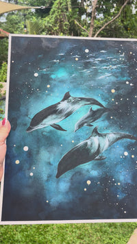 "Carried by the sacred currents of the ocean, the dolphins move forward together as one heart. They invite you to go with the flow, to trust the rhythm of life, and to swim freely alongside your soul family."